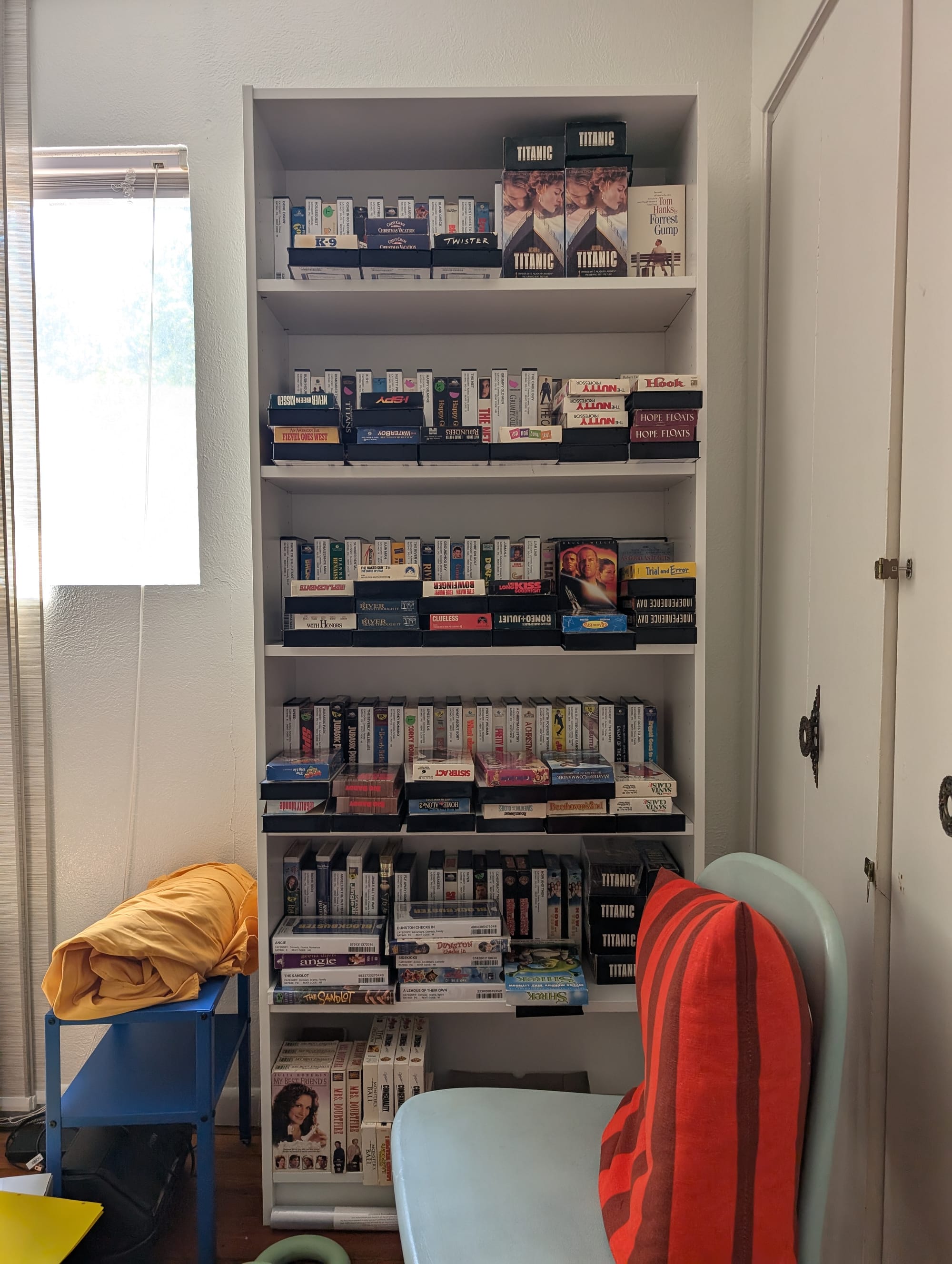 There was a six-inch gap near the far wall, so we filled it in with spare VHS tapes and called it the back room (pictured above).