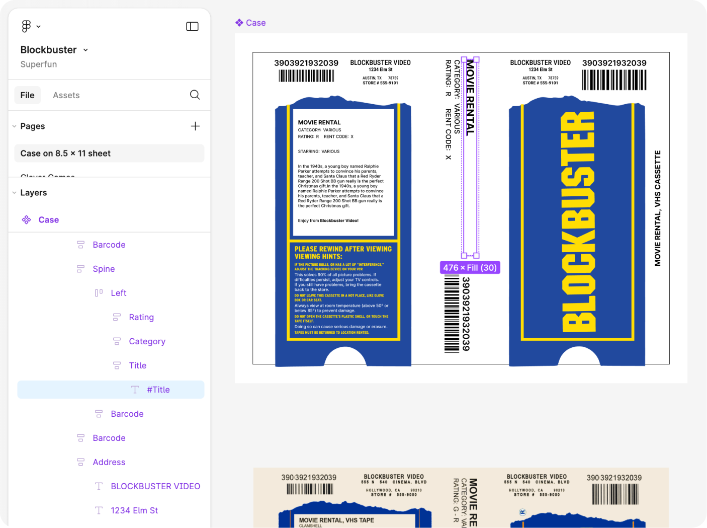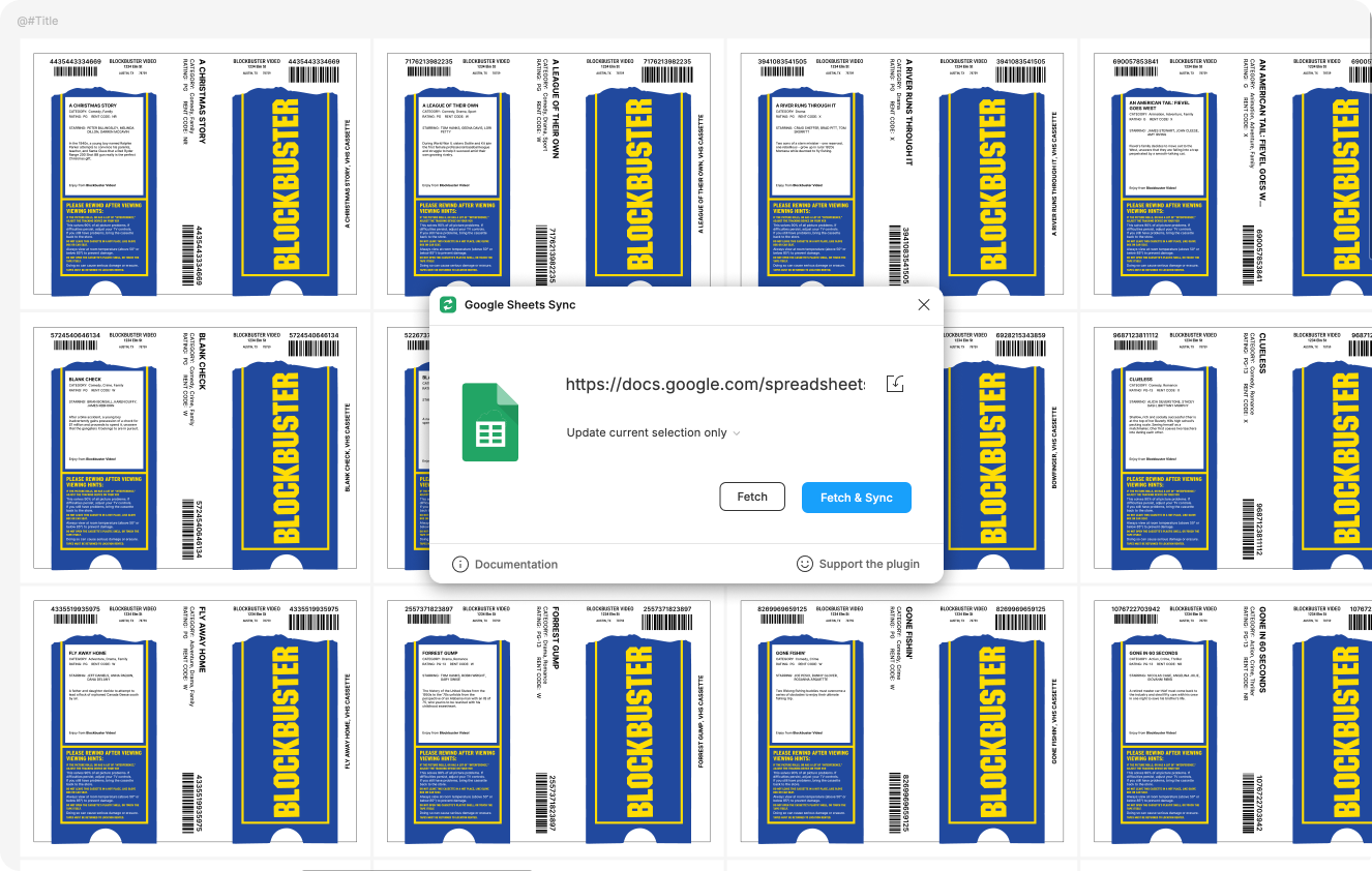 The script takes about 10 seconds to run, and it was easy to repeat over and over as I added more last minute eBay VHS to the collection (and we all know that "last minute" data changes almost never happen in real life projects, so it was fun to test that flow here). Next up, we're finally ready, it's time to bake some graphic templates with Figma using our fancy new spreadsheet!