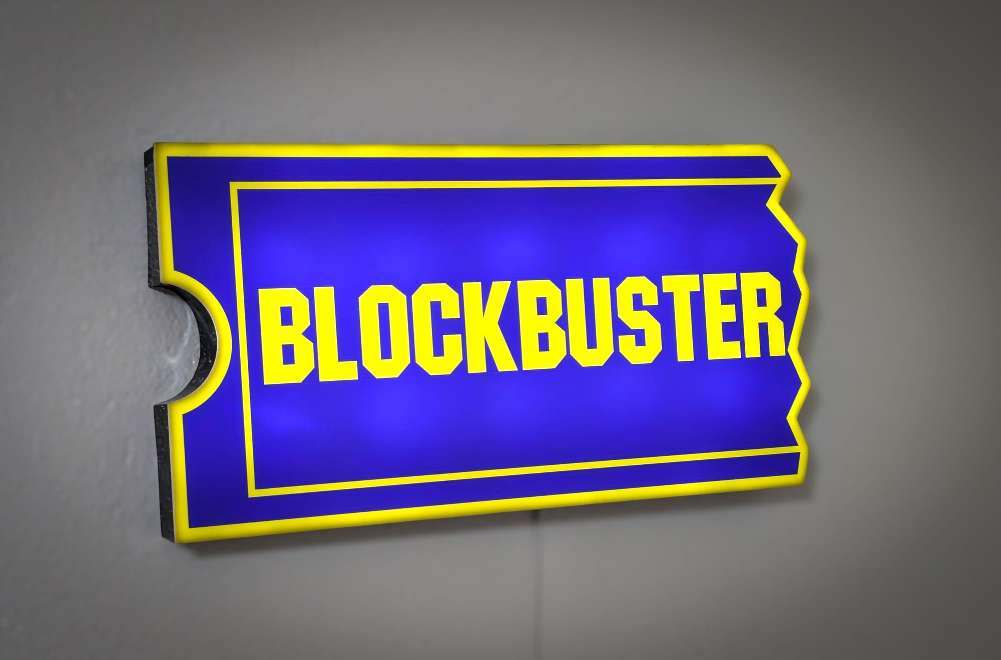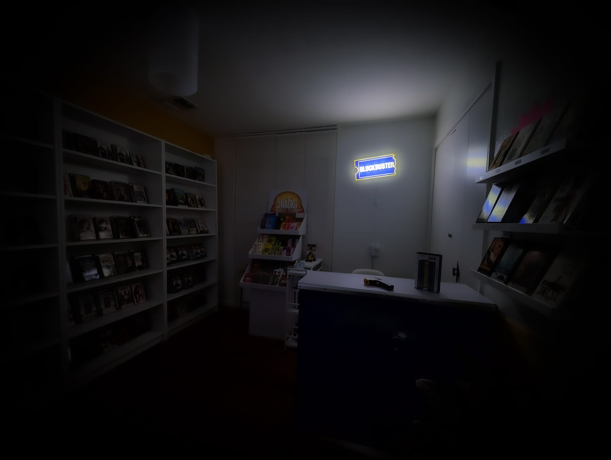 LED Blockbuster sign: we grabbed a lit LED logo sign from Amazon, which we put behind my "counter". Honestly, it's art and we will definitely keep this thing up somewhere.