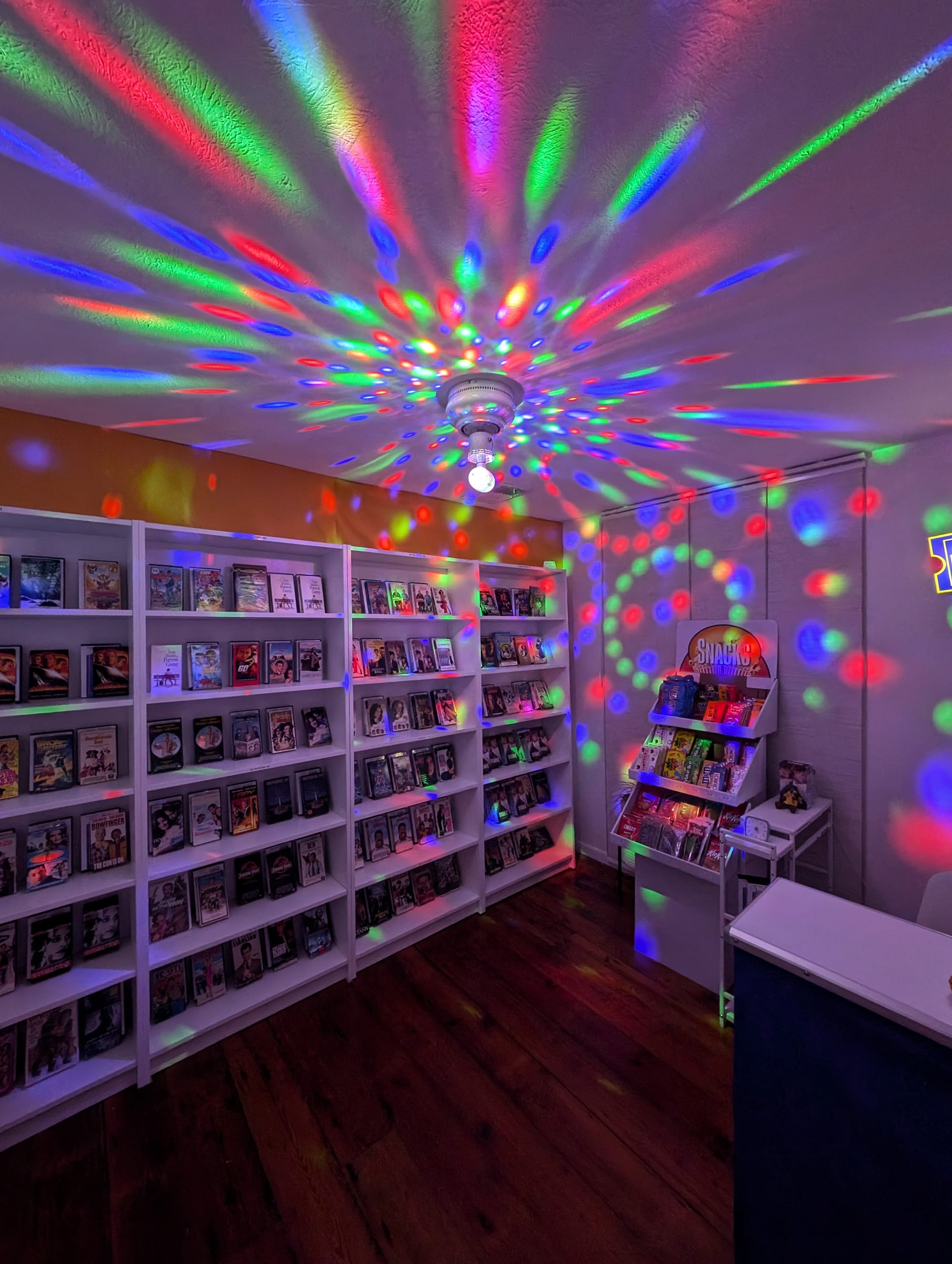 After everyone had "rented" a video, we swapped out the lighting fixture and turned the Blockbuster into a dance floor.